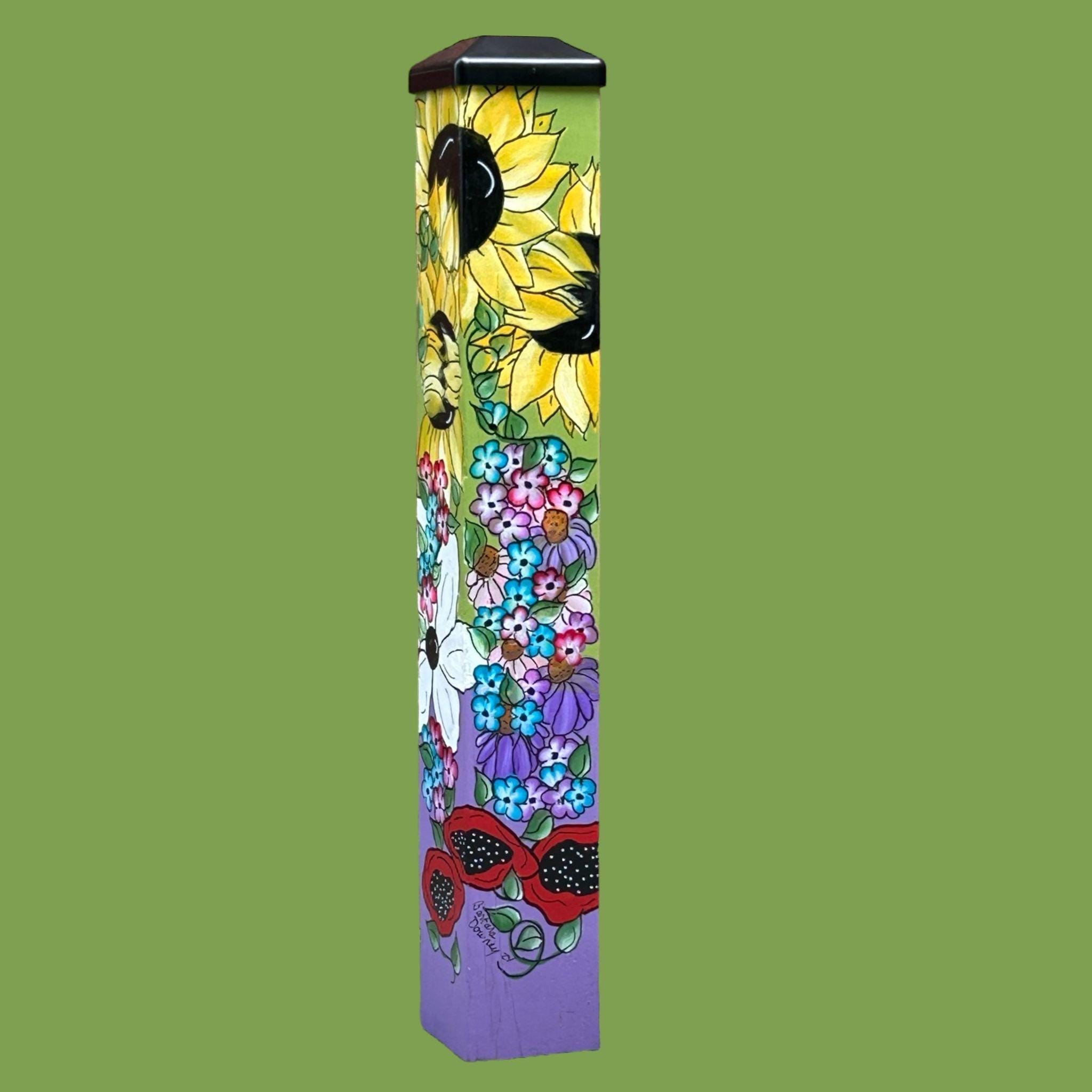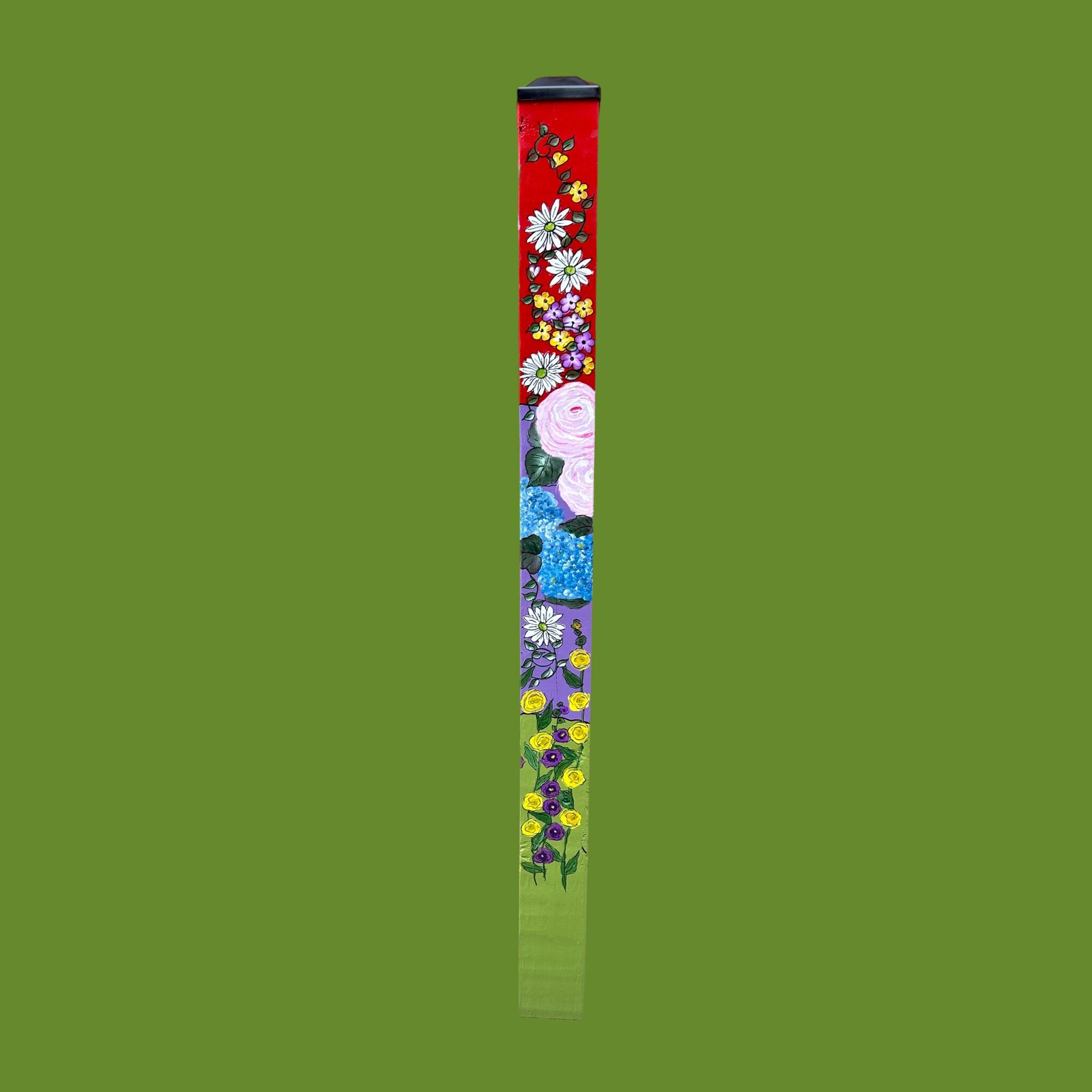 Bring a whimsical and vibrant splash of color to your garden, porch, or patio with our hand-painted *All Flowers* garden post. Featuring an array of beautifully painted flowers, along with charming details like butterflies, birds, and other garden friends, this design is purely decorative—no words, just a burst of cheerful color. It's the perfect way to brighten up your outdoor space with nature-inspired beauty!