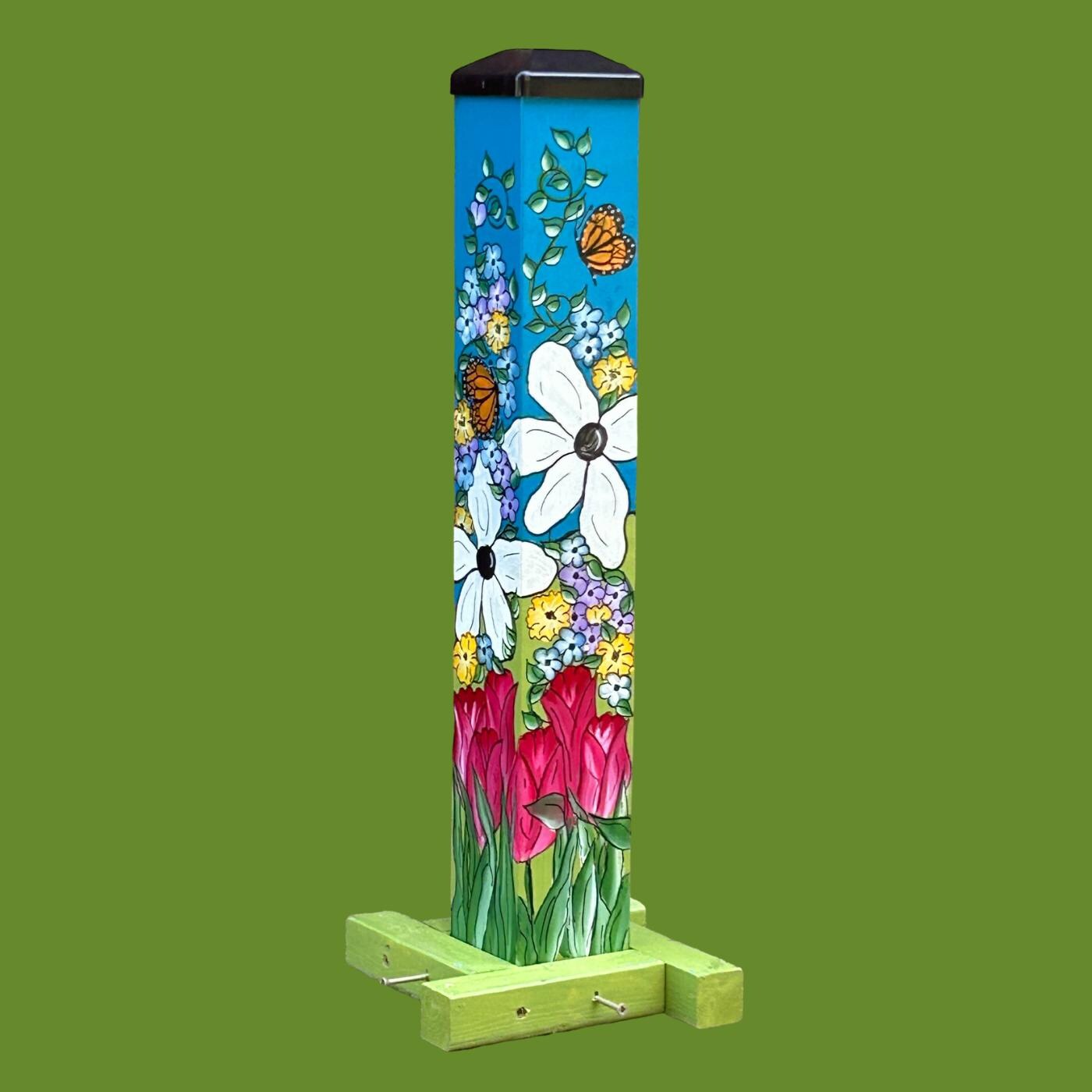 • Hand-Painted Artwork: Each garden post is meticulously hand-painted, ensuring that every piece is a unique work of art.