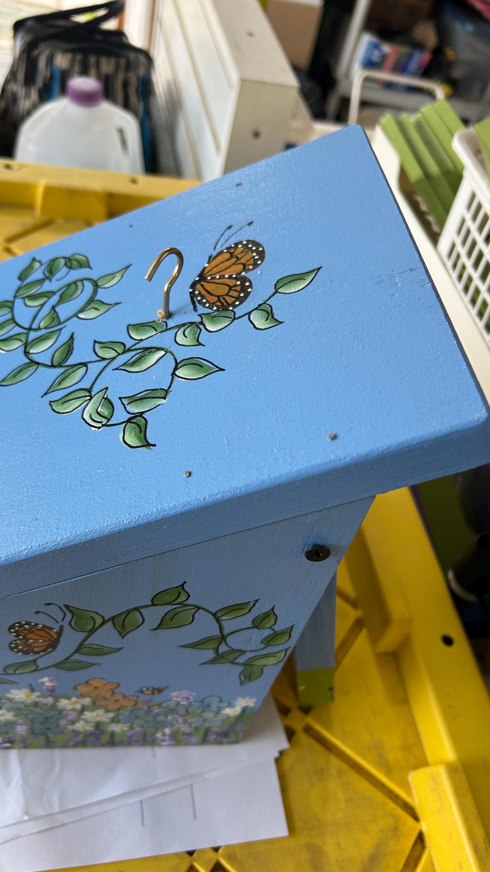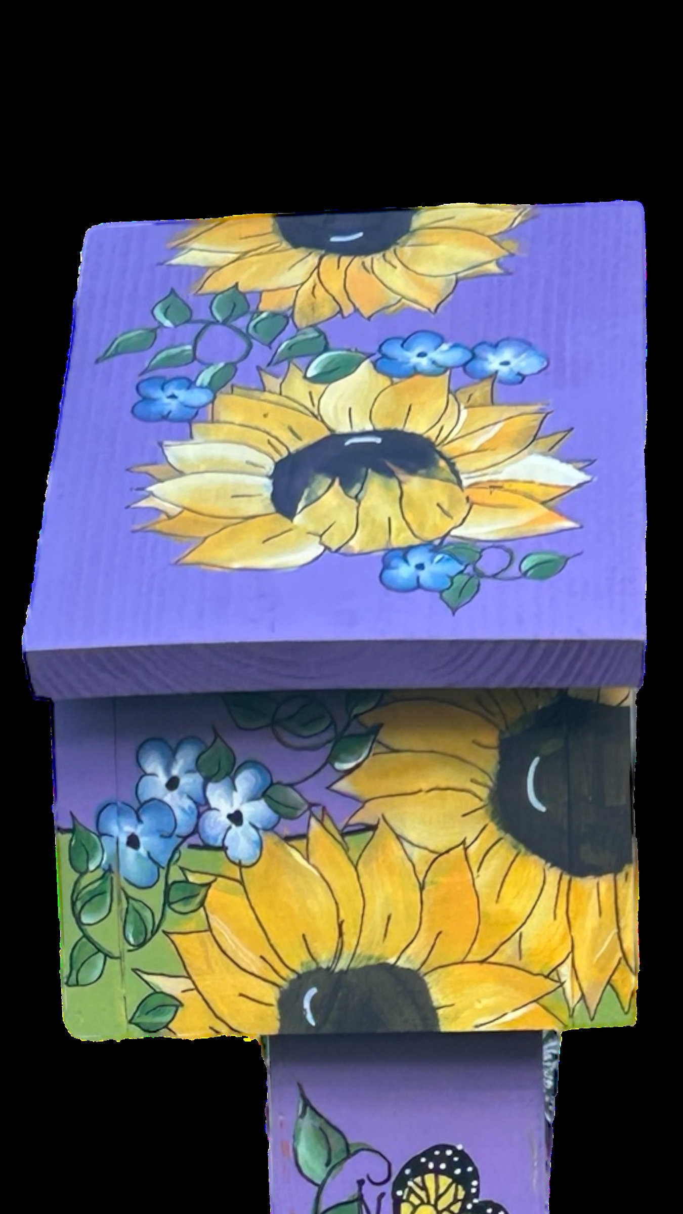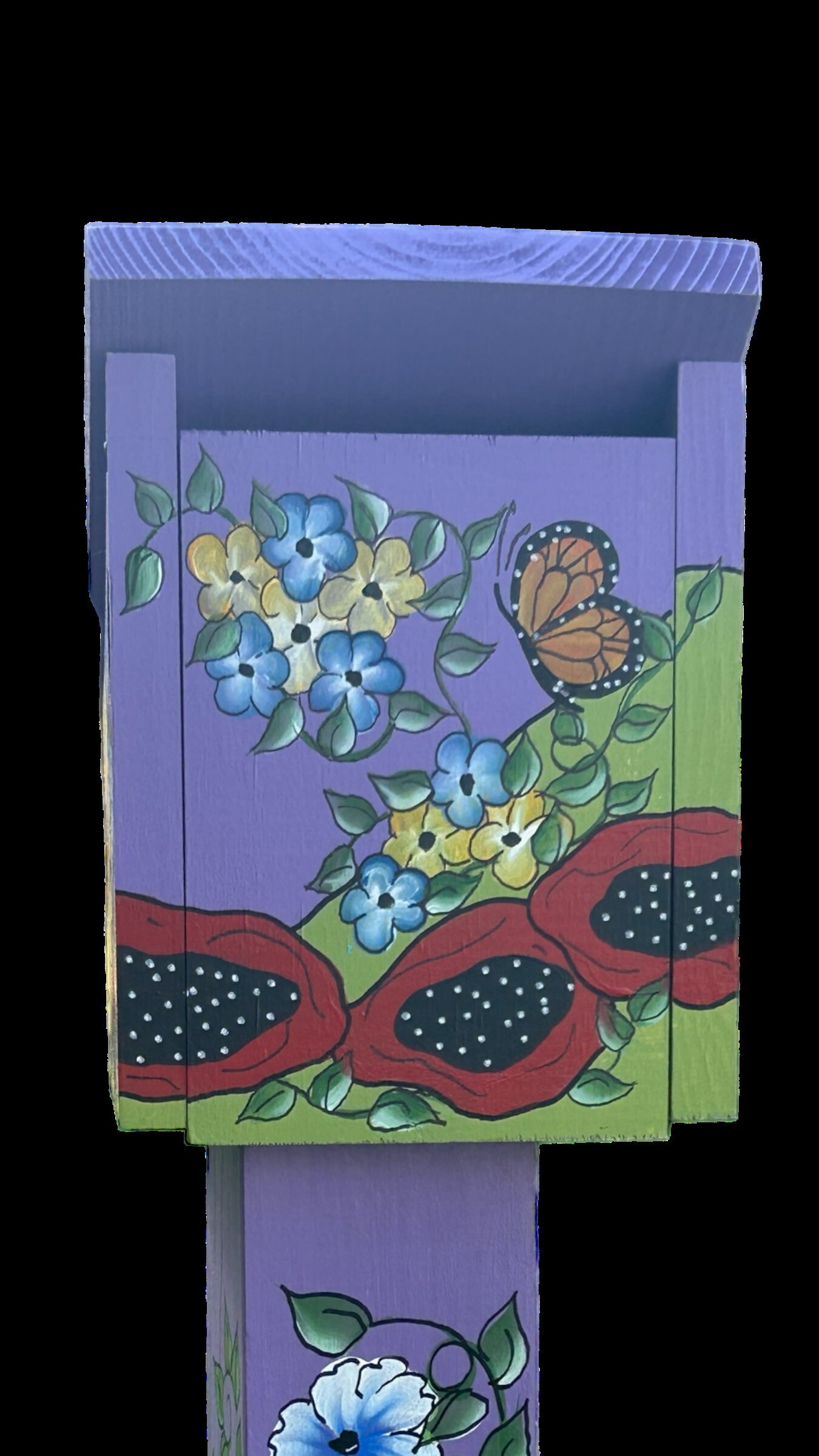Hand-painted birdhouses are charming and vibrant, each one uniquely adorned with a burst of colors and intricate designs. These birdhouses are crafted with careful attention to detail, showcasing an array of beautiful flowers that seem to bloom right out of the wooden structures. Each birdhouse features a variety of floral patterns, from poppies and daisies to bold sunflowers and tulips, all painted in vivid hues that catch the eye and bring a touch of nature’s beauty into any garden.