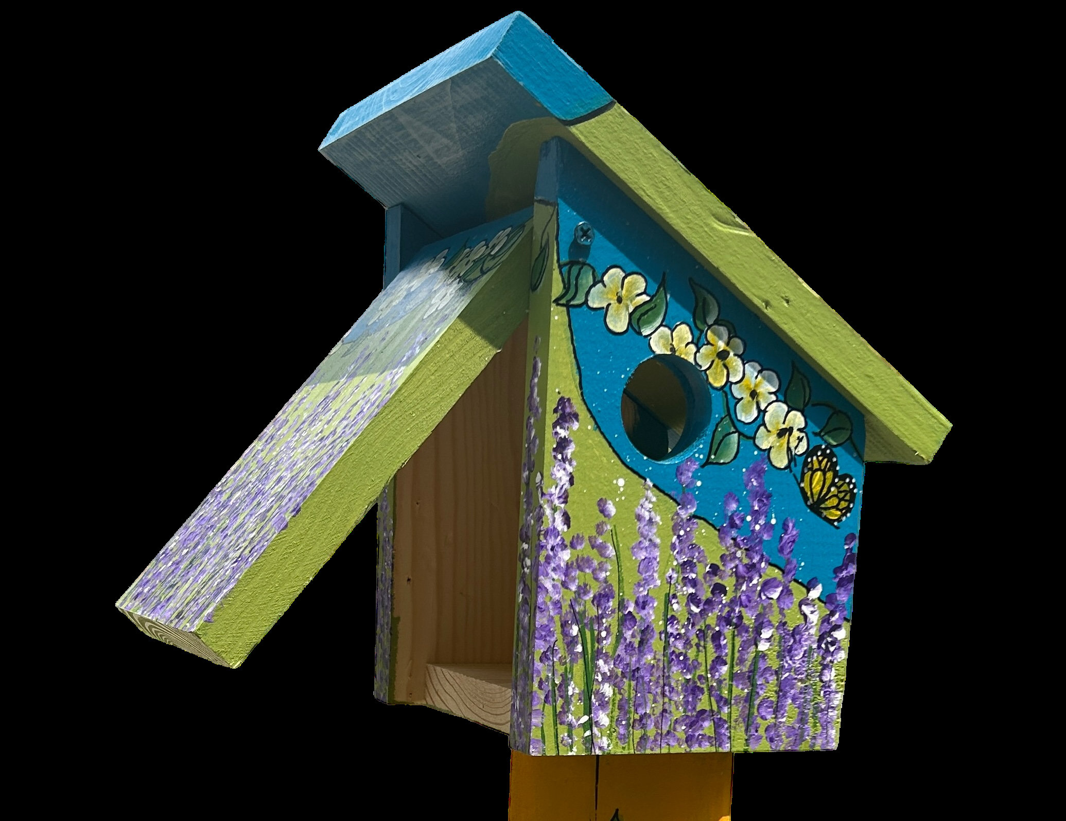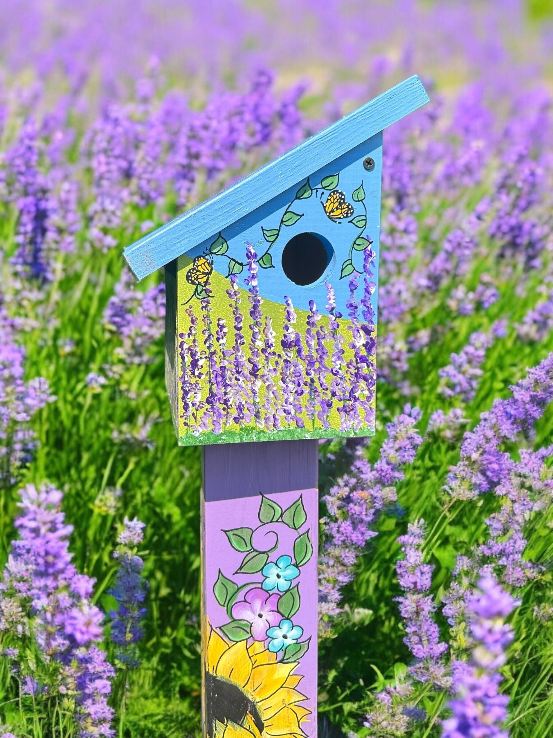 Welcome to your new favorite garden accessory! This Colorful Birdhouse, adorned with delightful lavender and charming flowers, is not just a beautiful decoration; it’s a cozy retreat for your feathered friends! Handcrafted with care, its vibrant colors will brighten up any outdoor space while providing a safe haven for birds to nest. Place it in your garden or on your porch to attract lovely songbirds. Perfect for bird lovers and floral enthusiasts alike—bring a touch of nature’s beauty to your home! Ideal gift for any gardener or nature lover.